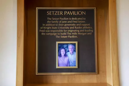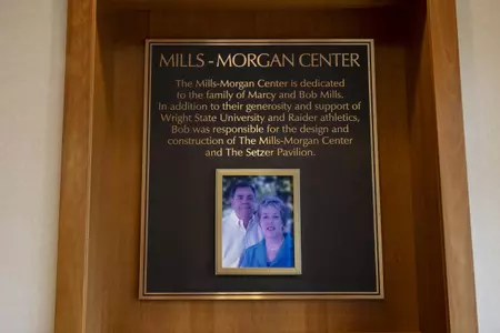 North Fairfield Road becomes Raider Road at the traffic light; Continue on Raider Road and The Mills Morgan Center and Setzer Pavilion is across the road from the Nutter Center on the left