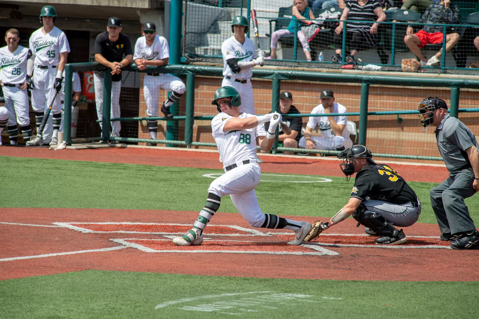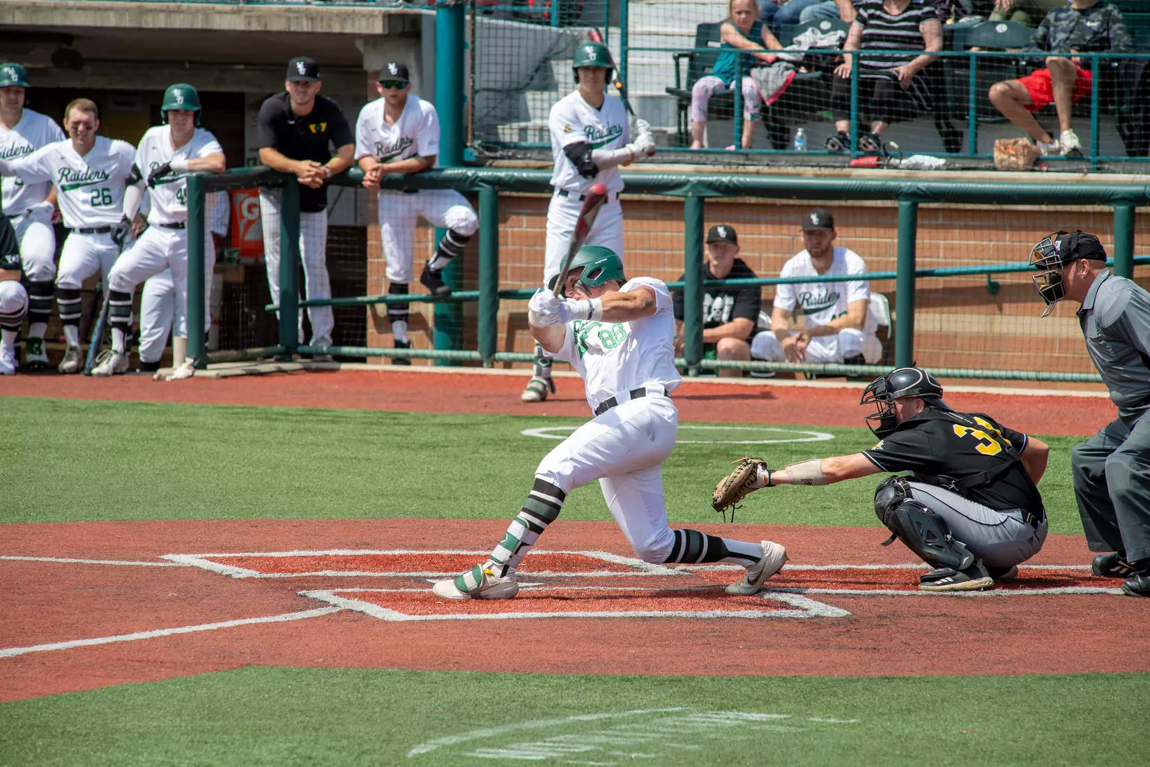 Zane Harris had four RBI, including three off a double in the fourth inning. Horizon League Player of the Year Peyton Burdick hit his 14th homerun to finish with two hits and three RBI. Junior Seth Gray ended with a double, two hits, two RBI and three runs scored while catcher Brandon Giltrow collected his fourth homer of the season. Leadoff hitter JD Orr had three walks, two steals and three runs scored. He now has a nation-best 59 stolen bases. As a team, the Raiders were walked 14 times, two short of their season high.
