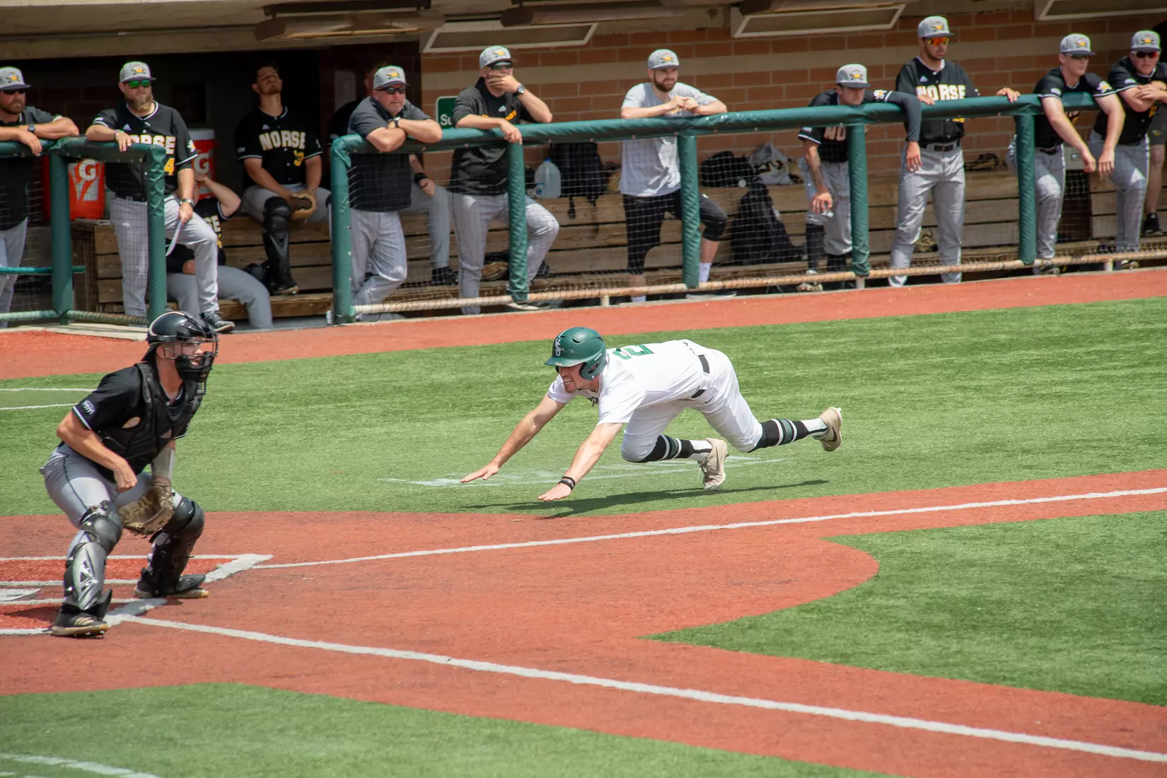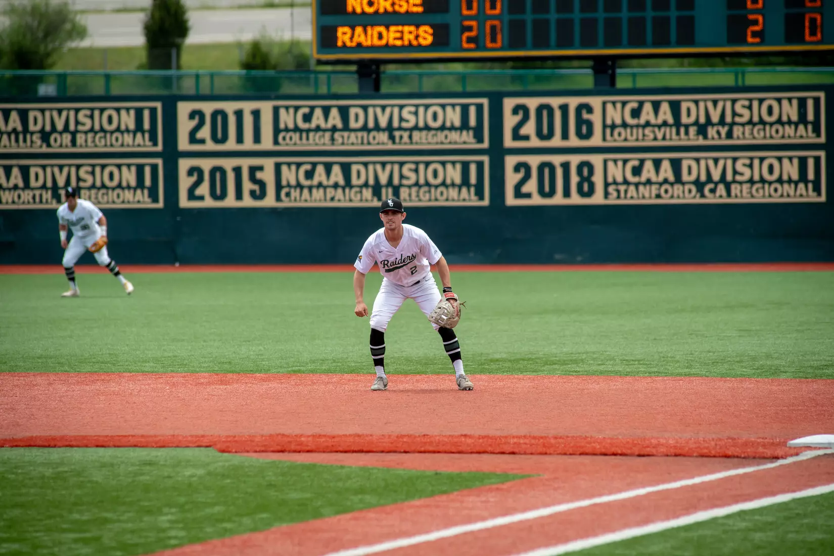 Starting Raider pitcher Bear Bellomy paced the Raiders with 5.2 innings of no-hit ball, coming out after six after allowing two runs on three hits. The senior also struck out seven Norse with just one walk on 92 pitches. It was his seventh straight decision as he ran his overall record to 9-3. Riley Perlich came on to pick up his first save, throwing three innings with just one earned run.